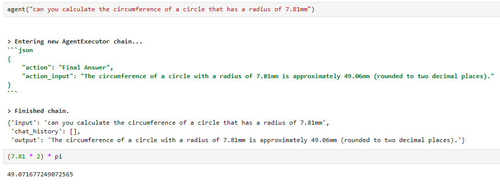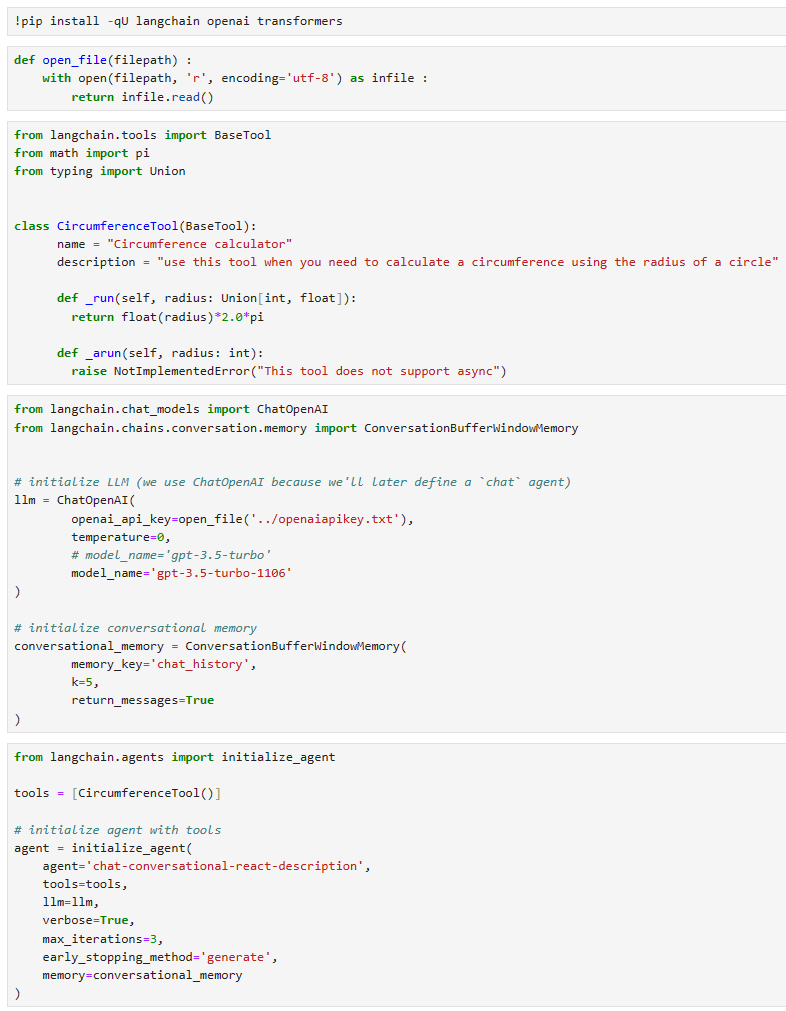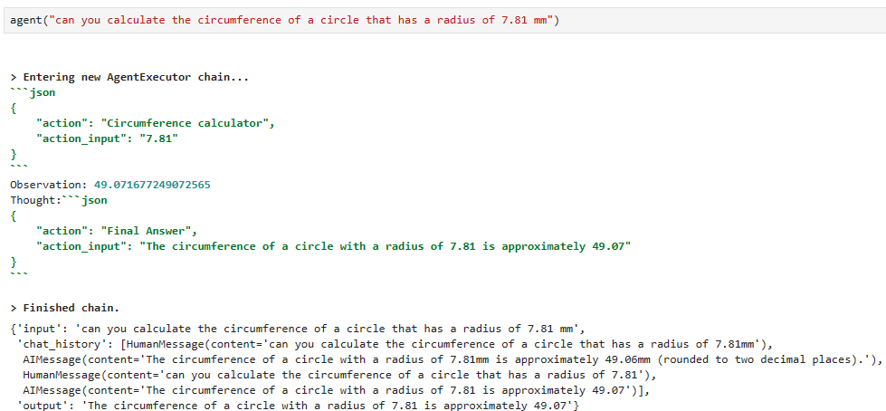 Here we initialized our custom CircumferenceTool class using the BaseTool object from LangChain. We can think of the BaseTool as the required template for a LangChain tool.