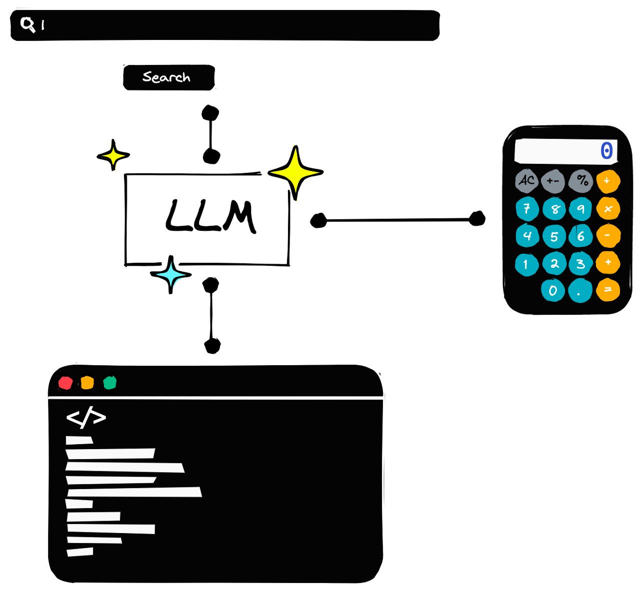 Using agents allows us to give LLMs access to tools. These tools present an infinite number of possibilities. With tools, LLMs can search the web, do math, run code, and more.