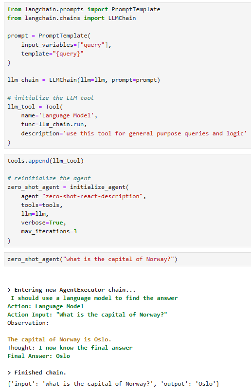 Here we initialize the LLM with a temperature of 0. A low temperature is useful when using tools as it decreases the amount of “randomness” or “creativity” in the generated text of the LLMs, which is ideal for encouraging it to follow strict instructions — as required for tool usage.