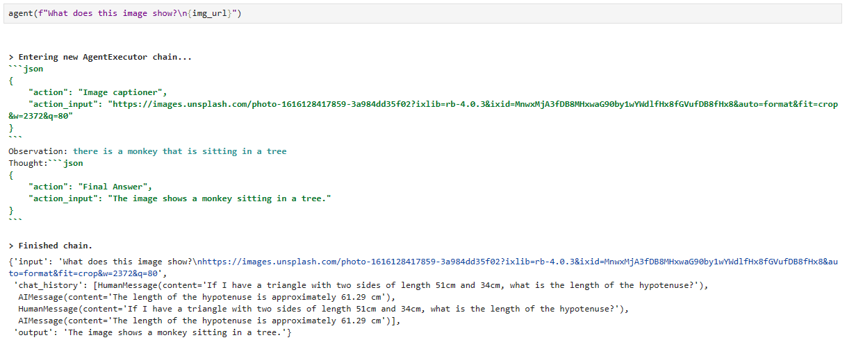 Now we can go ahead and ask our agent to describe the same image as above, passing its URL into the query.