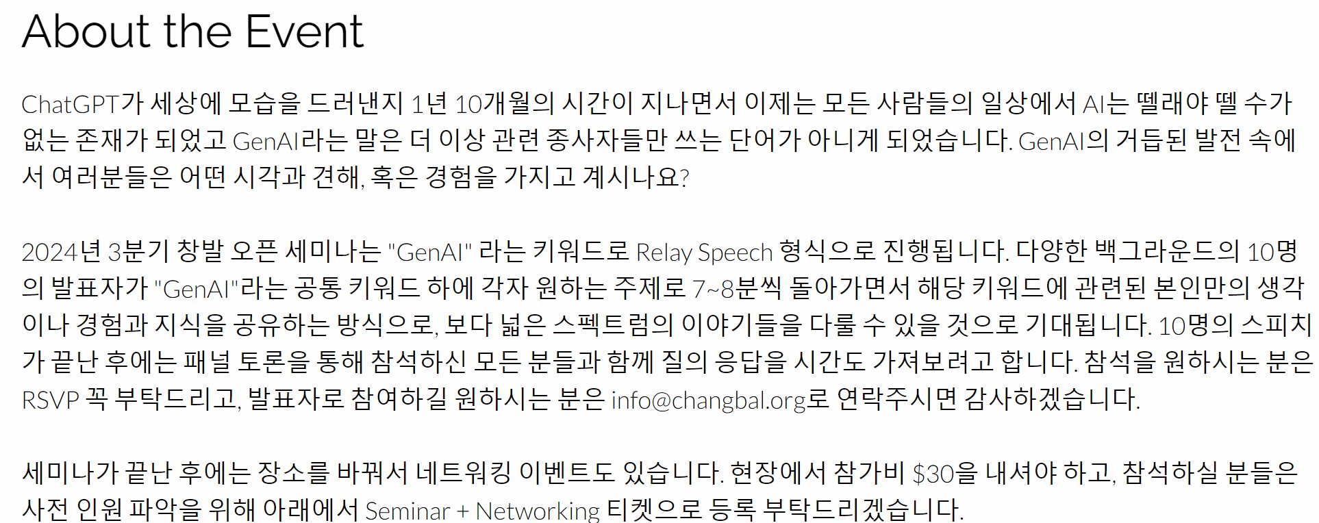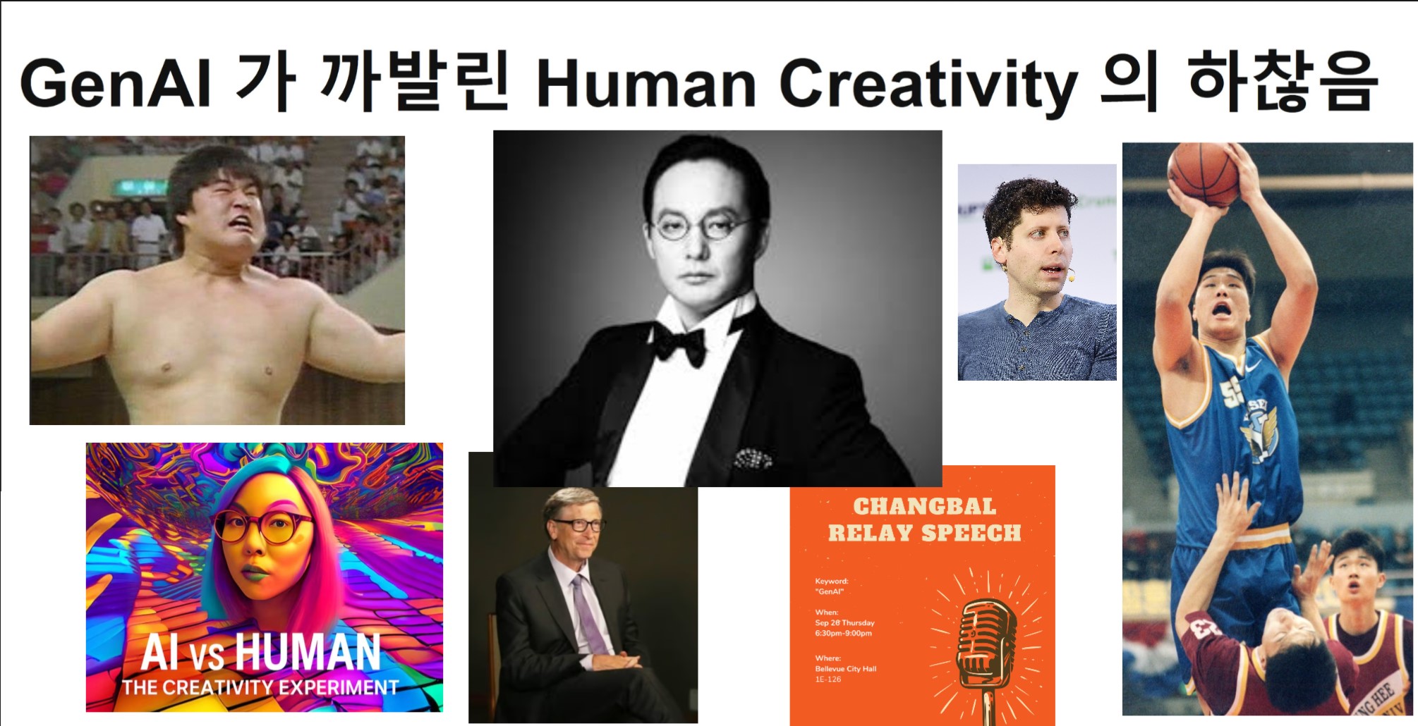GenAI 가 까발린 Human Creativity이 하찮음 이라는 도발적인 Topic 으로 시애틀 지역 한인 IT 종사자 모임인 Changbal 에서 주최한 Relay Speach에 참가했습니다.
