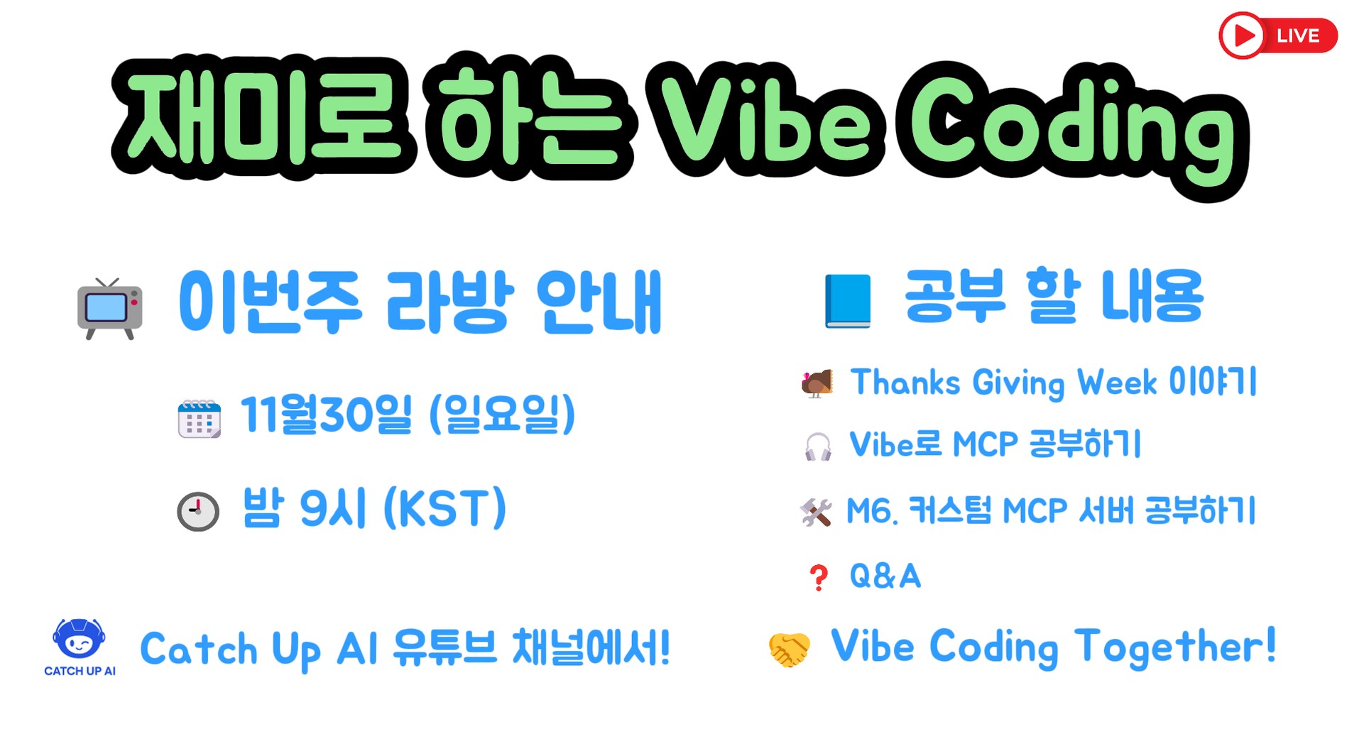 🦃 Thanks Giving Week 이야기 🎧 Vibe로 MCP 공부하기 🛠️ M6. 커스텀 MCP 서버 공부하기 ❓ Q&A