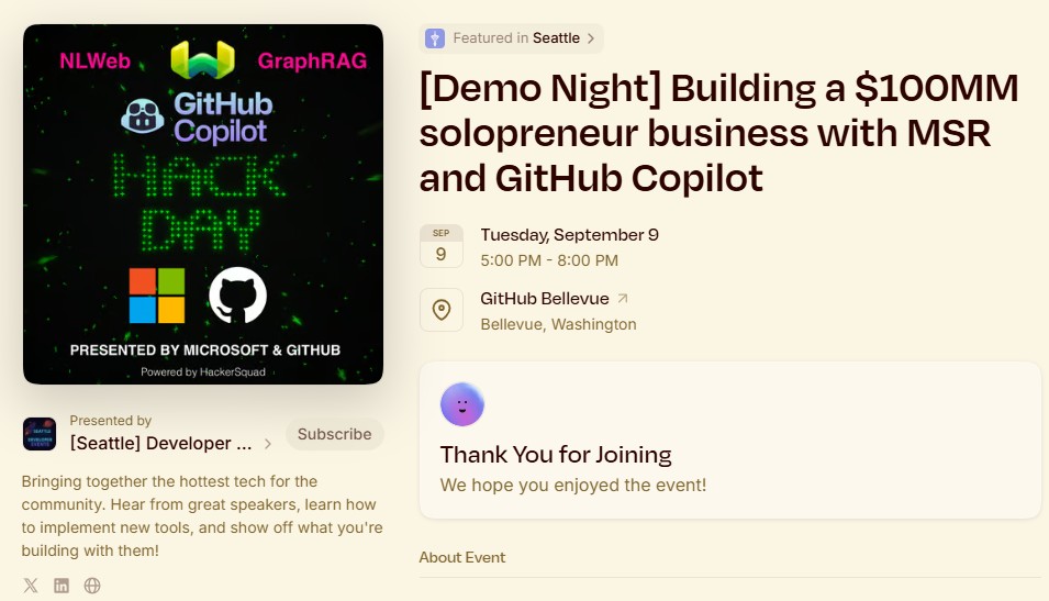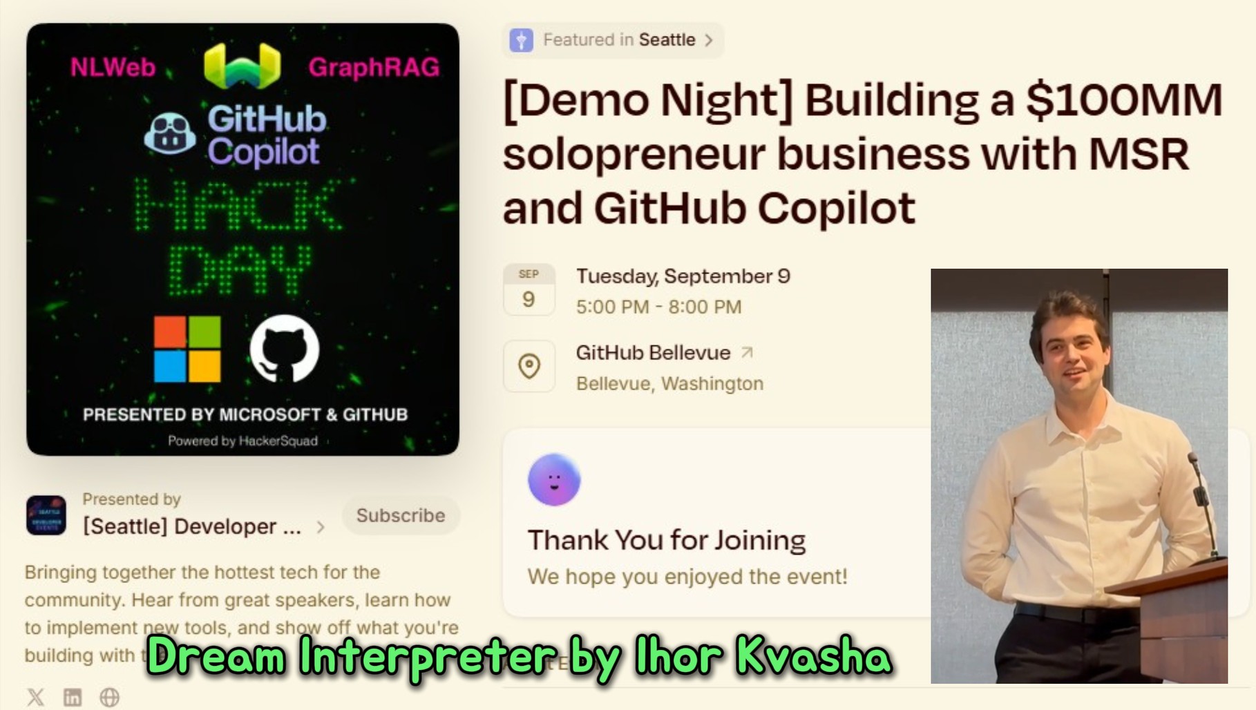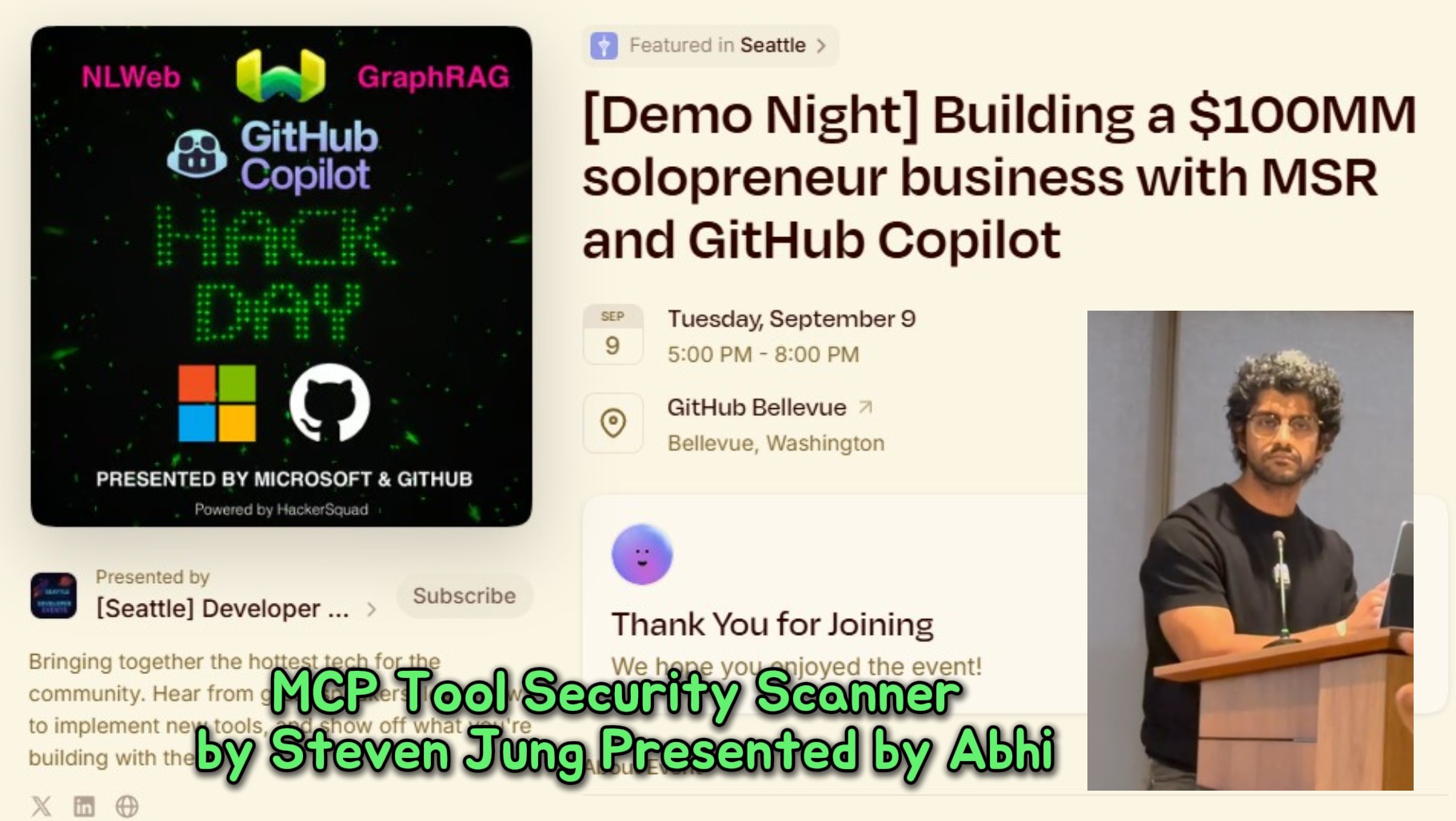 이번주 라이브 방송에서는 MCP 마지막 단원인 M8 Capstone 으로 마무리를 합니다. 그동안 Vibe 로 MCP 공부를 하면서 새로 발견한 프로세스를 Vibe Learning 방법론에 적용해 한단계 업그레이드 합니다. 또한 Startup 425 가 Bothell City Hall 에서 개최한 Startup Accelerator Demo 행사와 AI Camp 가 Bellevue GitHub 에서 개최한 GenAI, LLMs and Agents 행사 참가 소식을 전합니다. AI4PKM Project 도 열심히 진행중에 있습니다.