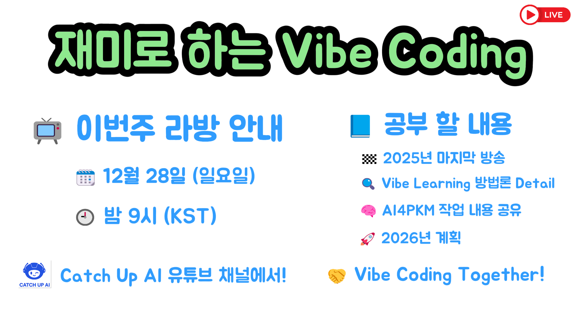 🏁 2025년 마지막 방송 🔍 Vibe Learning 방법론 Detail 🧠 ai4pkm 작업 내용 공유 🚀 2026년 계획
