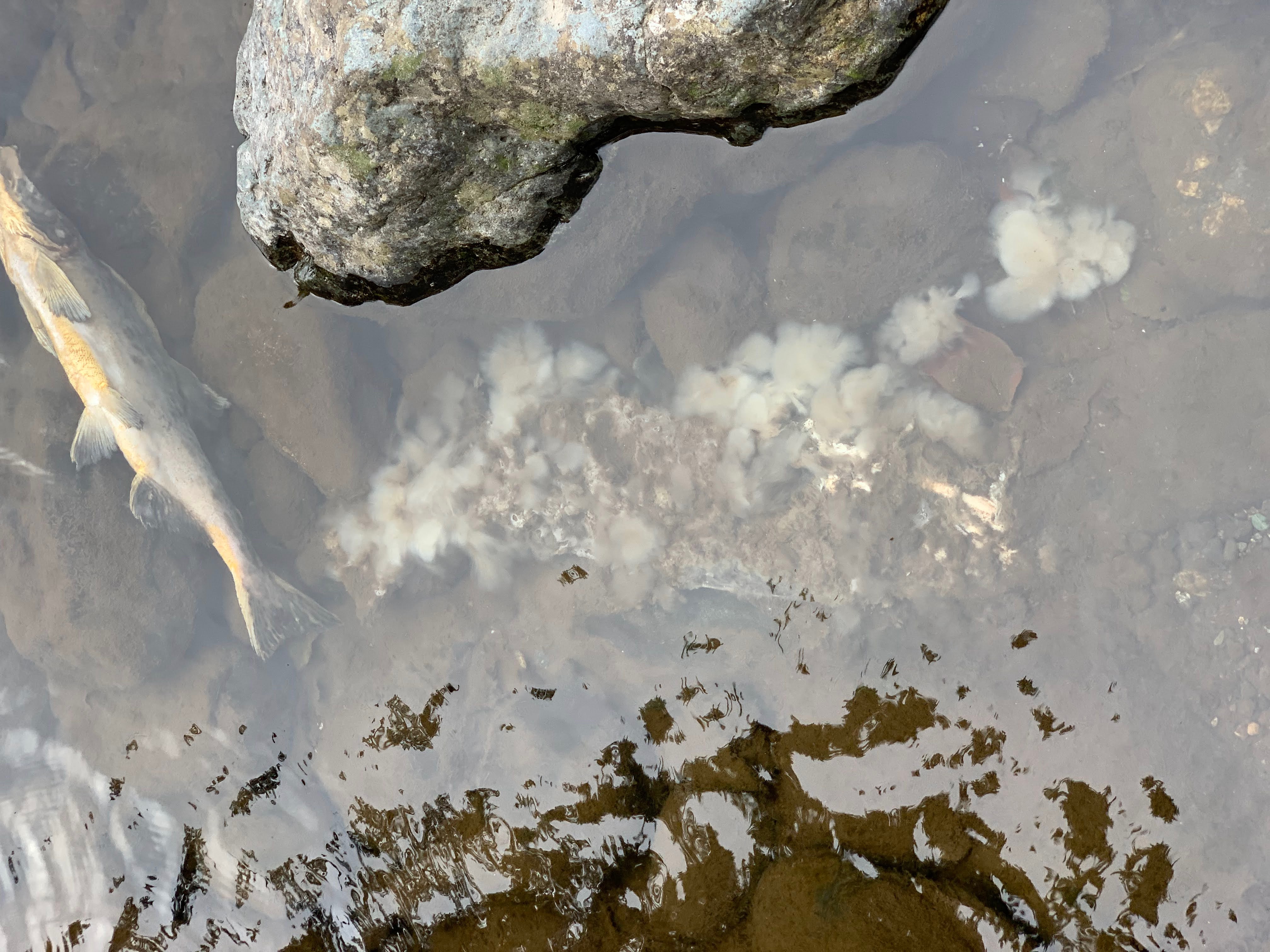 자신들의 임무를 다 끝마치고 죽은 연어들로 그 냇물이 가득 찼다.