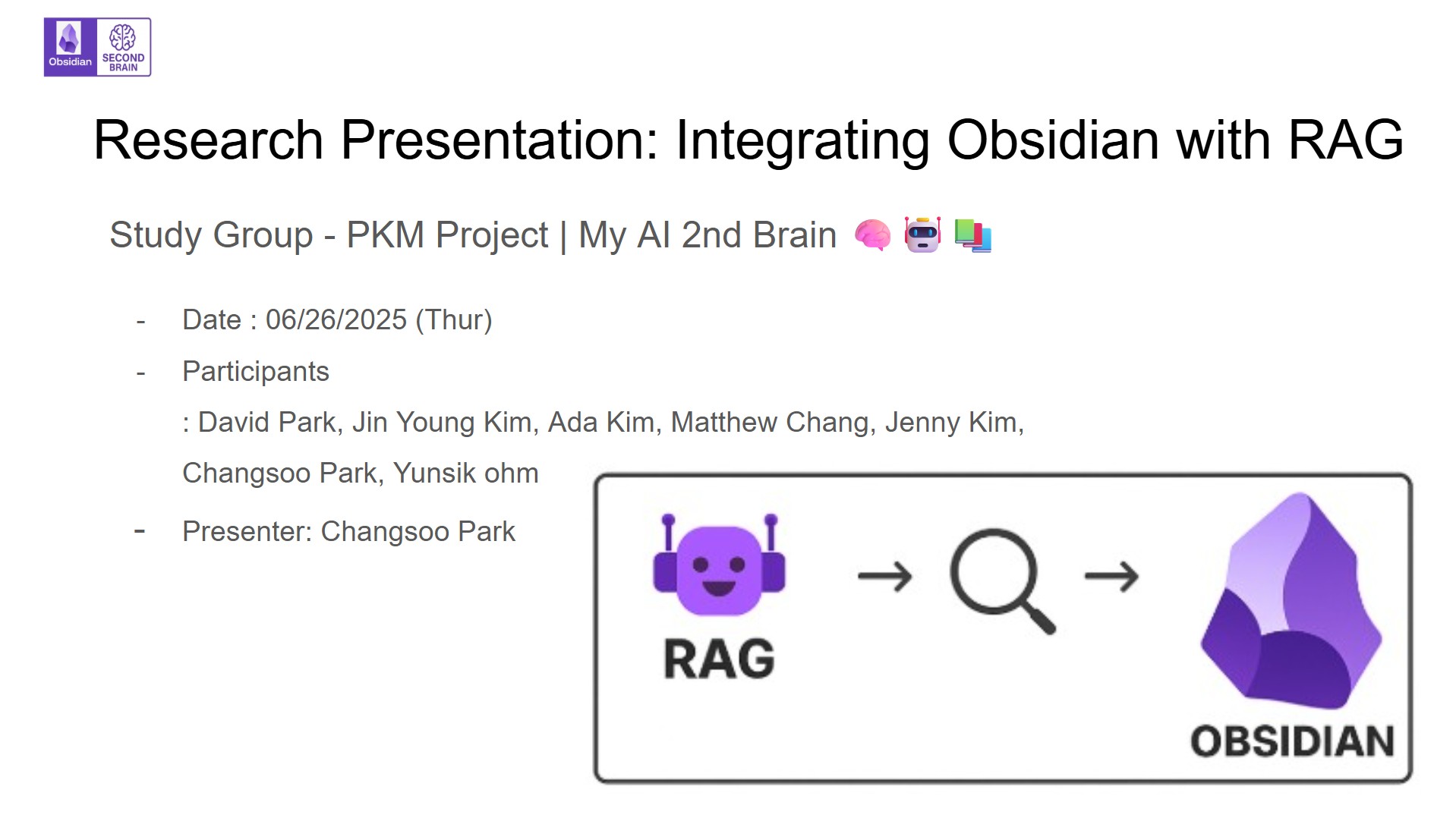 🎓 Study Group 발표 자료 – Obsidian과 RAG 연동 방법 리서치 결과 발표 – PKM Project | My AI 2nd Brain 🧠🤖📚