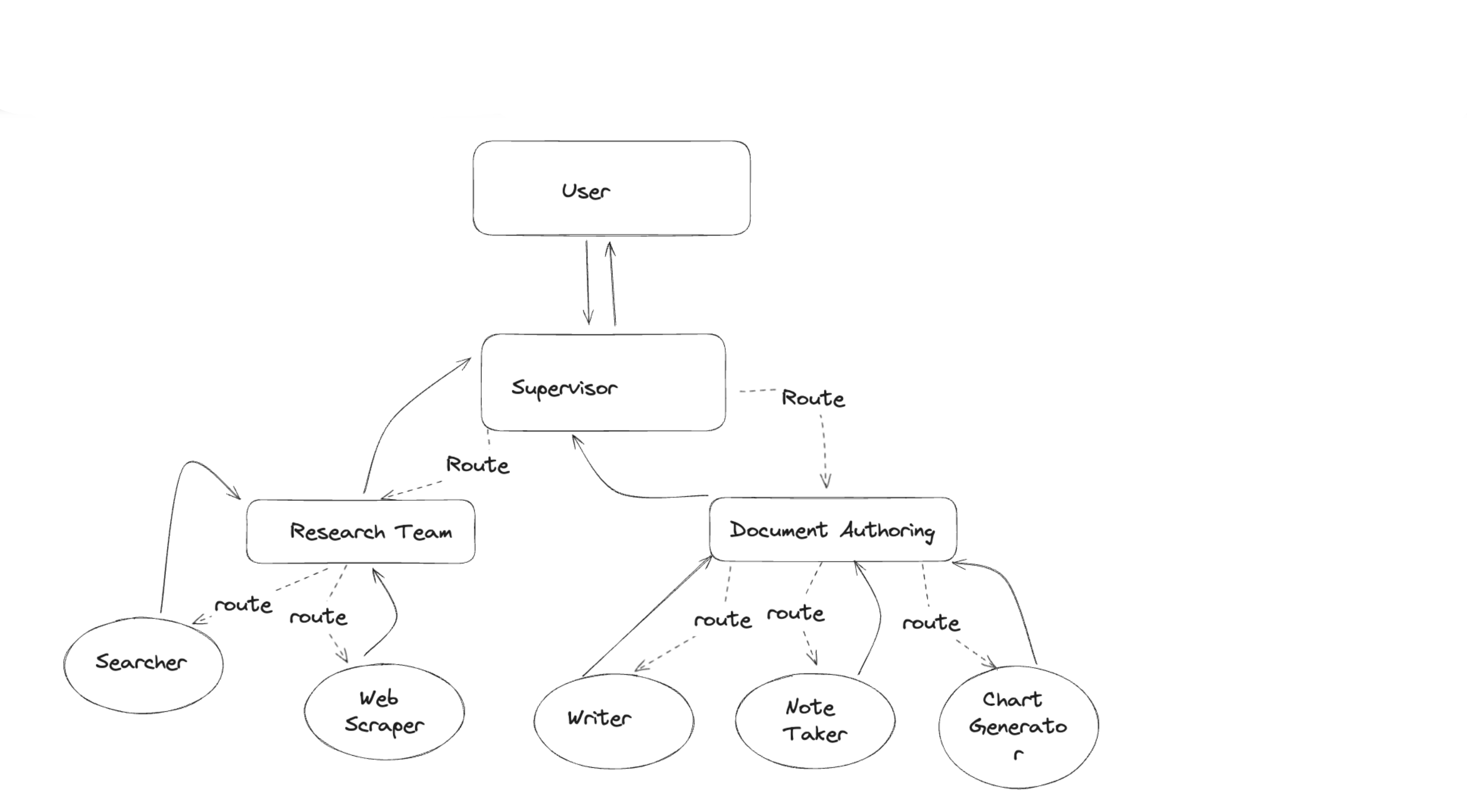먼저 Document Team 을 만들고 지난 시간에 만들었던 Researching Team 과 합쳐서 더 큰 Supervisor Architecture 를 손쉽게 만듭니다.