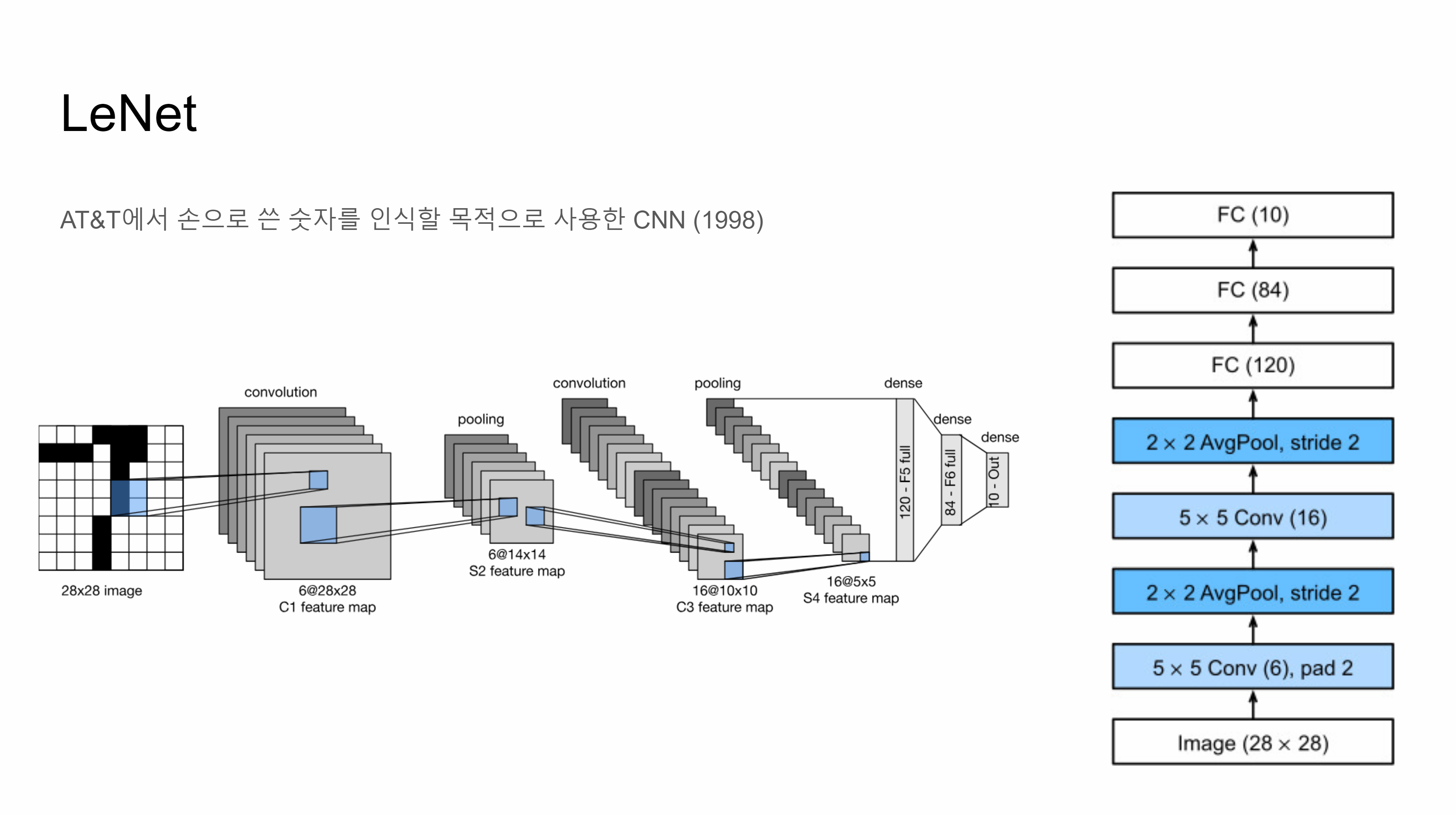 1989년 벨 연구소에서 만든 LeNet 이 잠깐 사용되다가 잊혀 진 것을