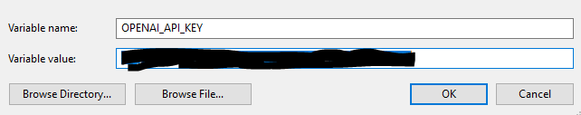 이렇게 환경 변수에 OPENAI_API_KEY 를 세팅 한 후 모두 OK 버튼을 눌러서 닫습니다.