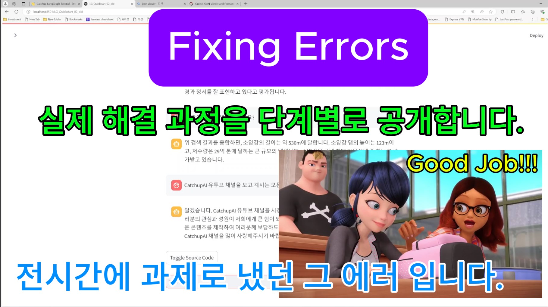 지난 시간에 LangGraph 의 Tool을 사용할 때 발생한 Chatbot 기능의 에러가 있었습니다. 제가 과제로 냈었는데요. 오늘 그 에러를 해결하는 과정을 단계별로 보여드릴께요.