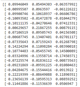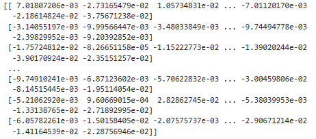 TSNE() 함수를 이용하기 전의 matrix의 값은 아래와 같습니다.
