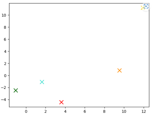 1000 개의 점이 있을 겁니다. 2차원화된 임베딩 값을 x,y값으로 해서 표시한 것입니다.