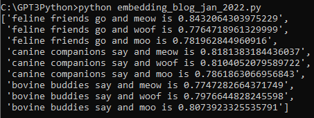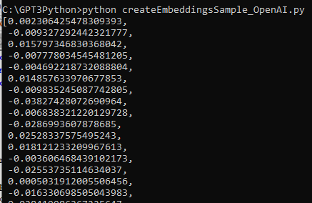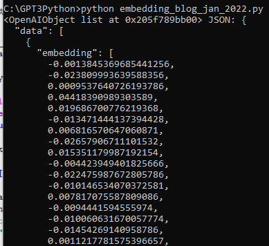 # get embeddings for all strings embeddings = [embedding_from_string(string, model=model) for string in strings]