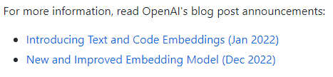 2022년 12월에 발표된 새 모델인 text-embedding-ada-002 를 사용하면 더 빠르고 정확하면서 비용이 더 저렴한 것 같습니다.