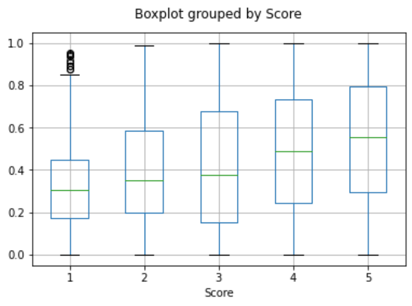 We assume the score is a continuous variable between 1 and 5, and allow the algorithm to predict any floating point value. The ML algorithm minimizes the distance of the predicted value to the true score, and achieves a mean absolute error of 0.39, which means that on average the prediction is off by less than half a star.